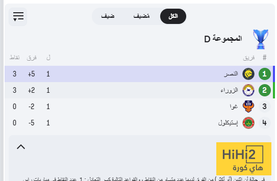 شبكة موطني : ترتيب النصر والزوراء قبل مباراة اليوم