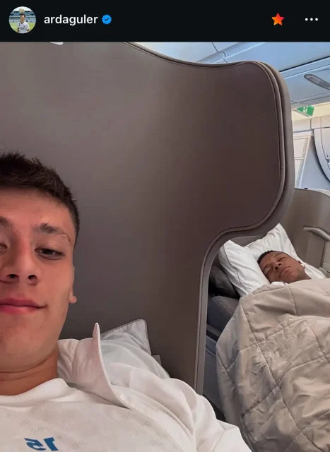 أظهرت الصورة ، التي شاركها جولر ساعات بعد فوز ريال مدريد على فياريال 3-1 على ملعب سانتياغو بيرنابيو ، أن مبابي كان نائماً بينما يبتسم جولر بجواره ، في مشهد عفوي يعكس روح الفكاهة والعلاقة القوية بين اللاعبين.